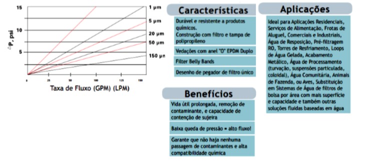 Os filtros são ideais como polimento ou pré-filtros em aplicações que exigem filtragem fina e alta capacidade, utilizando mídia livre de celulose a 100% e limpável a partir de 5 micras, estas são as soluções de filtragem comerciais do futuro!